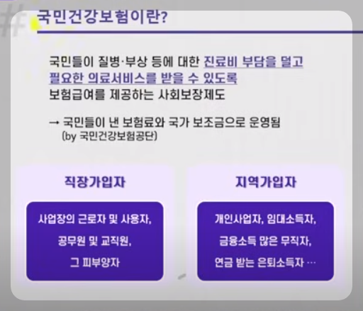 - 직장가입자: 사업장의 근로자 및 사용자와 공무원 및 교직원, 그리고 그 피부양자.