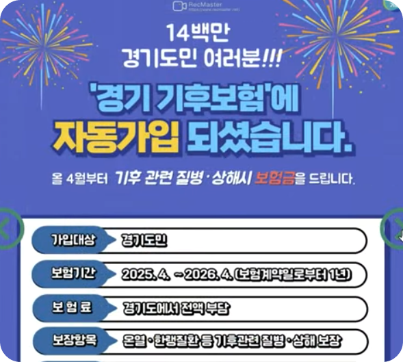 알아보겠습니다. 걍기도 민의 건강을 위해 기후보험을 시행하는 것입니다. 경기도민은 별다른 가입절차 없