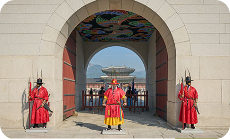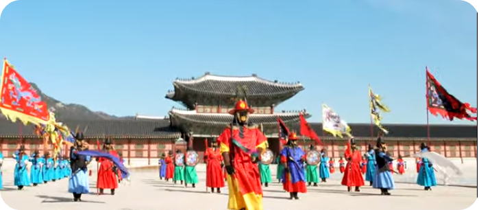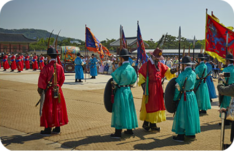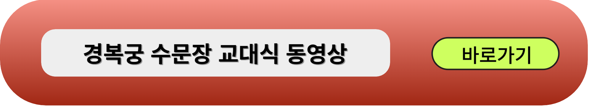 ⦁ 교대 수문군이 수문장의 호령으로 광화문에 배치되고 광화문 경계 상황과 수문군의 근태를 점고한다.