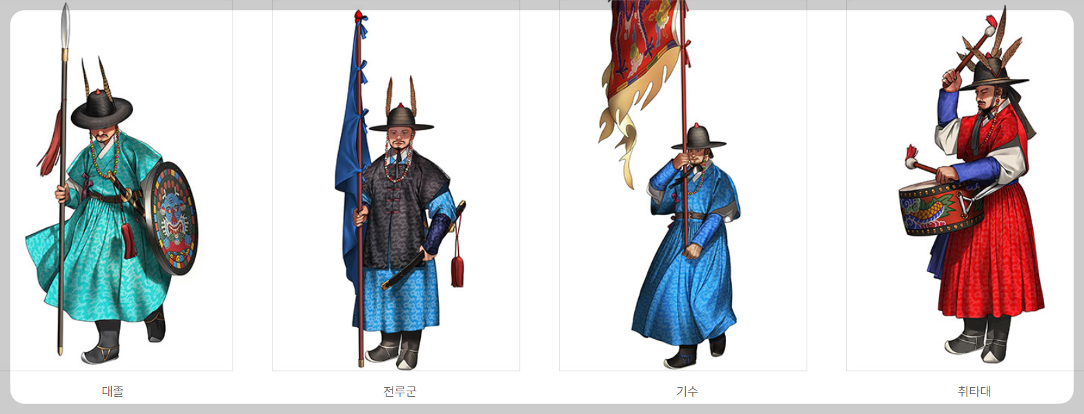 ⦁ 궁궐과 도성의 입구를 지키는 수문장의 임무는 왕실의 안전과 가장 밀접했기 때문에, 매우 중요한