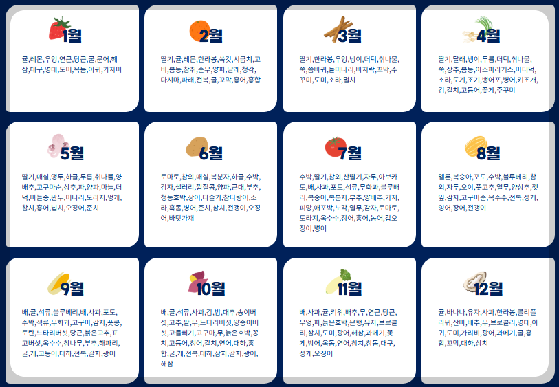 품코너를 운영하고 있습니다. 월별 다양한 제철식품을 만나보시기 바랍니다.