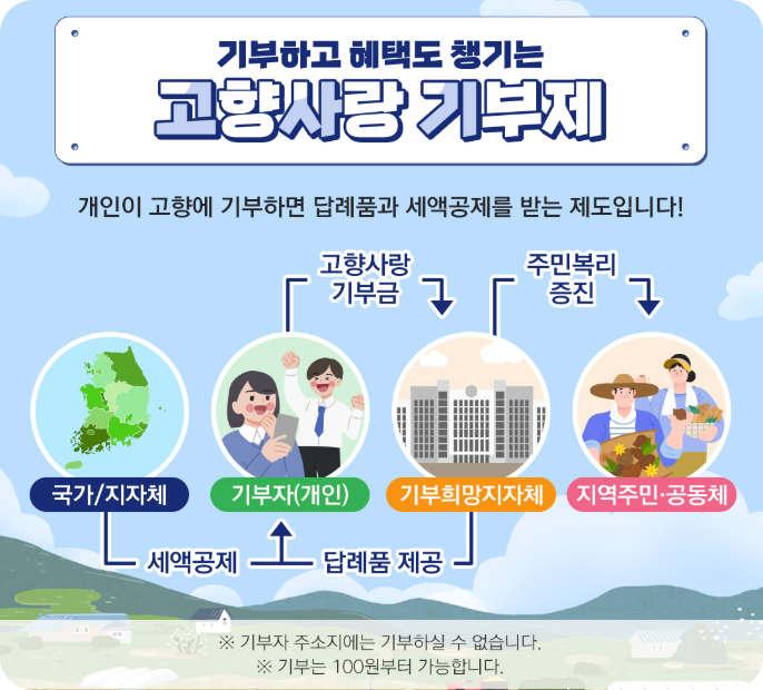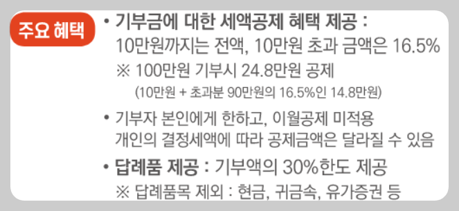 고향사랑기부제 답례품은 10만 원 기부재테크의 답례품으로 지역사회에서 기부자에게 보답하는 제