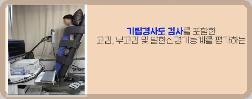 ⦁ 교관, 부교관 및 발한신경기능계를 평가하는 자율신경계검사를 시행합니다.