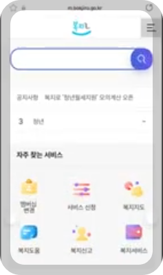② 우측상단에 메뉴를 클릭하여 다음 화면 좌측 복지서비스에서 모의계산을 클릭합니다.