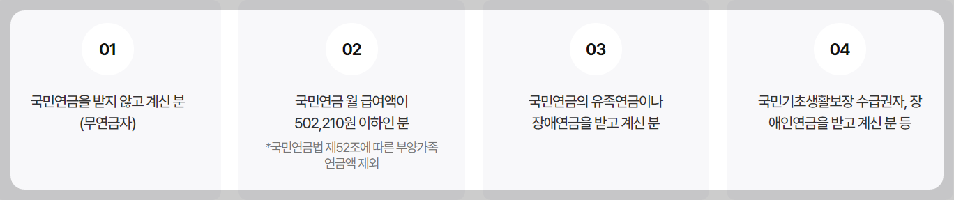 - 전국 읍·면·동 주민센터 또는 행정복지센터, 국민연금공단 지사에서 신청 가능합니다.