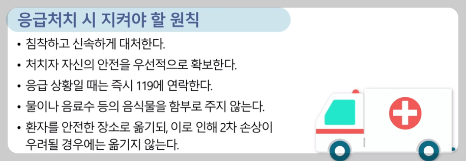 -환자 주위에 여어사람이 있을 때는 응급처치 교육을 가장 많이 받은 사람의 지시에 따라 응급처치한다.