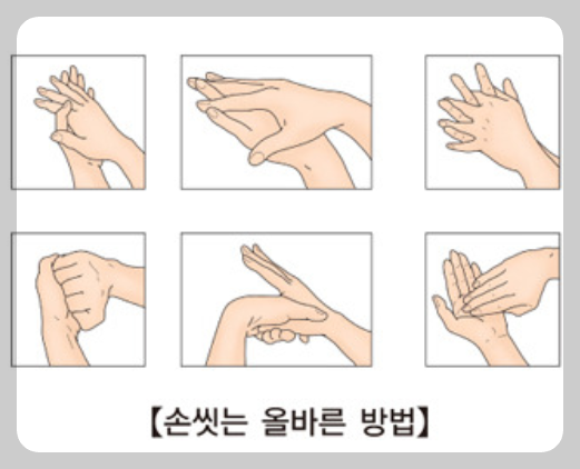 - 화장실을 다녀온 뒤 그리고 식사하기 전 또는 음식 준비를 이기 전에 꼭 손을 씻어야 한다.