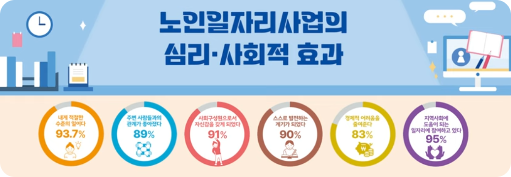 노인일자리지원사업은 고령화 노인들이 사회적 경험 등으로 가지고 있는 각 분야의 기능 노동력을
