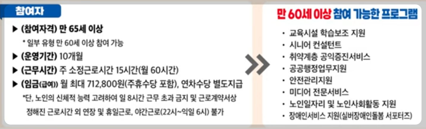- 참여대상 : 만 65세 이상이면 참여가능, 일부직무에 한해서는 만 60세 이상분들도 가능합니다.