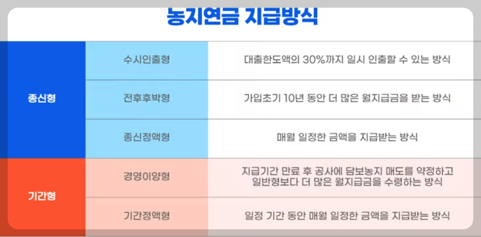 농지연금 종류 및 지급방식.