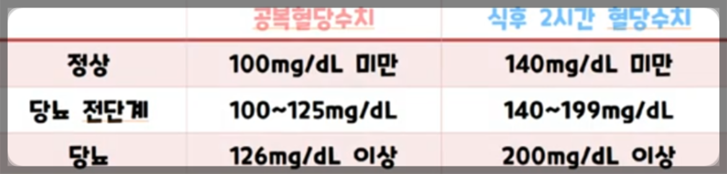 - 당뇨 전단계라고 할 수 있는 경우는 공복 혈당 수치가 100 ~ 126mg/dL 이하,