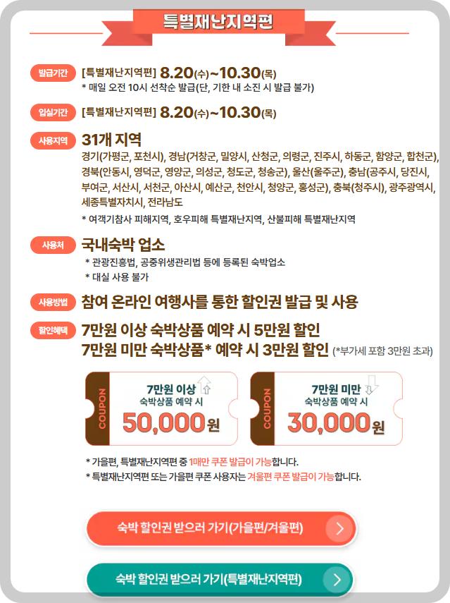 ⯄ 가을 편, 특별재난지역 편 중 1인당 1개의 쿠폰만 발급이 가능합니다.
