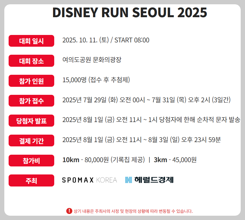디즈니런 서울 2025 대회 안내.