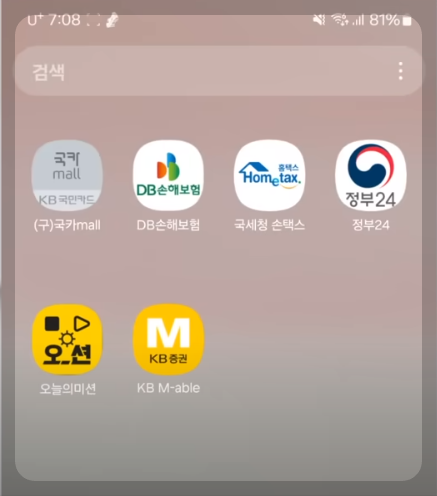 위로 끌어올리면 아래 화면과 같이 검색창이 나옵니다.