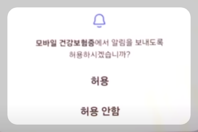⑬ 모바일 건강보험증에서 알림을 보내도록 허용을 2번 눌러줍니다.