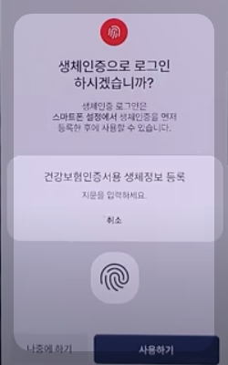 ㉓ 지문으로 인증하는 것입니다. 지문을 찍고 아래 사용하기 눌러줍니다.