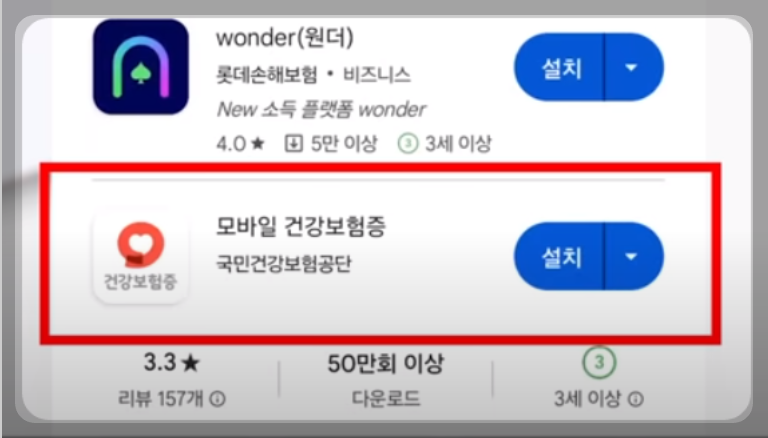 ② 모바일 건강보험증에 설치를 클릭합니다