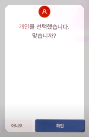 ⑤ 개인입니까? 눌러줍니다.
