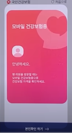 ㉖ 위화면이 모바일 건강보험증입니다. 터치를 하면 아래화면에 개인정보가 나옵니다.