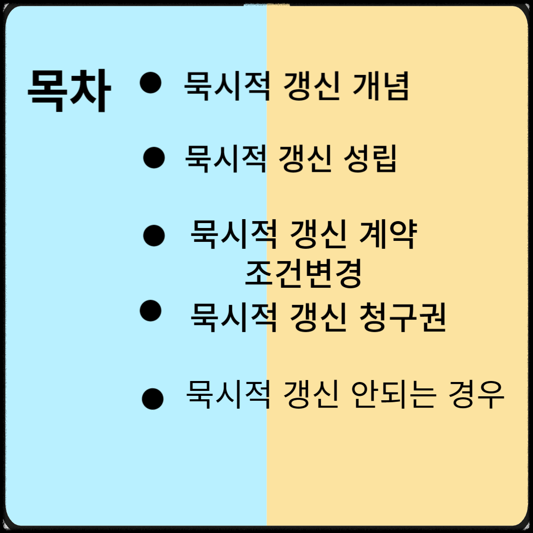 - 묵시적갱신은 주택임대차보호법 제6조 제1항에 명시되어있습니다.