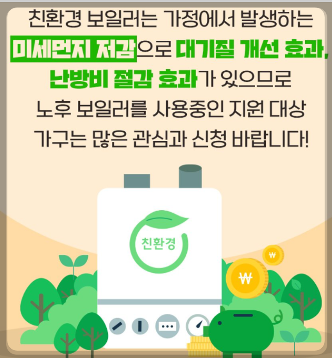 - 보일러 교체비용 지원 목적은 미세먼지 저감 및 대기질 개선의 목적이 있습니다.