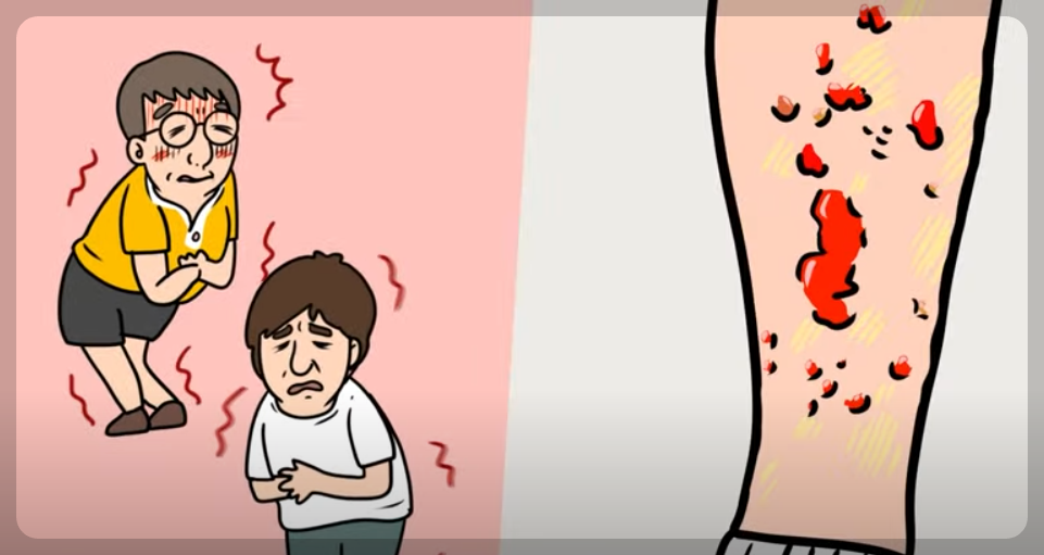 -대부분 증상 발생 24시간 내 하지에 피부병변이 생기게 됩니다.