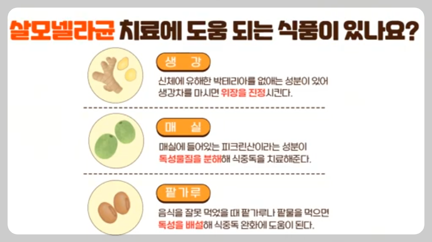 ⯄ 살모넬라균 감염증 치료 도움식품.