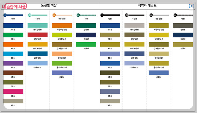 새 지하철 노선별 색상.