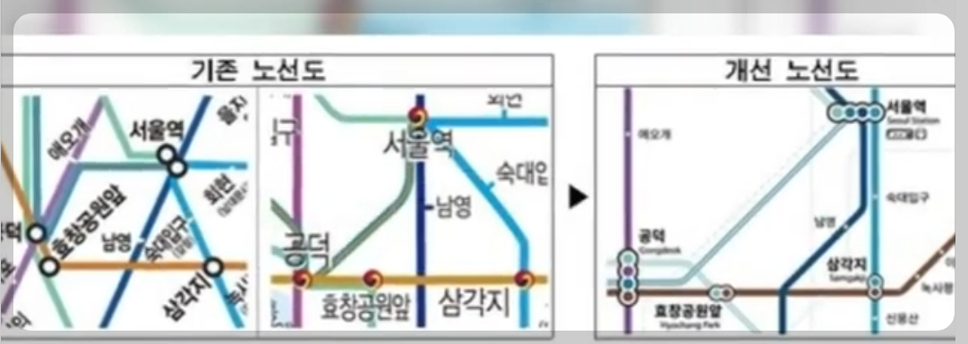 - 새 지하철 노선도는 기존에 사용되던 노선도에서 이용객들을 위한 배려가 부족했다는 평가를
