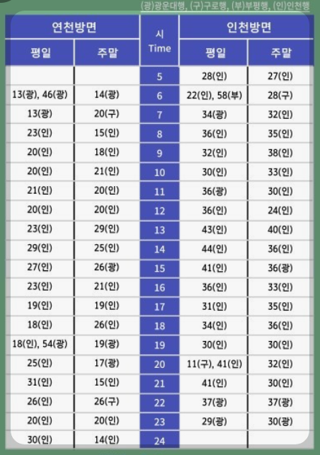 - 전철 1호선 운행 시간표.