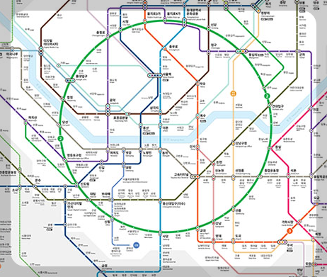 - 선환선인 2호선을 동그라미로 표현하여 거리감각에 도움이 되는 것이 특징입니다.