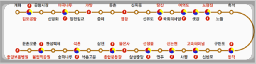 - 기존환승역 태극문양 표시를 없애고 동그라미를 추가하여 승객이 알 수 있도록 배치를 하였다.