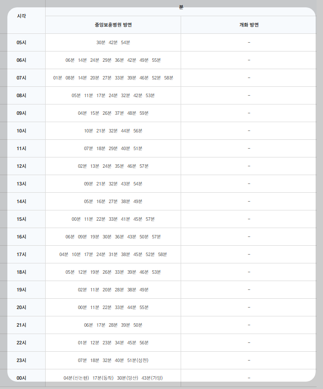 서울 지하철 운행 시간표.