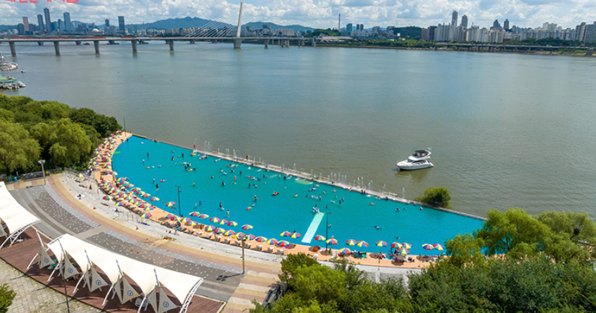 ⯄ 한강 야외수영장과 물놀이장은 도심 한가운데 위치해 접근성이 좋고, 한강을 바라보며 수영을 즐길 수 있
