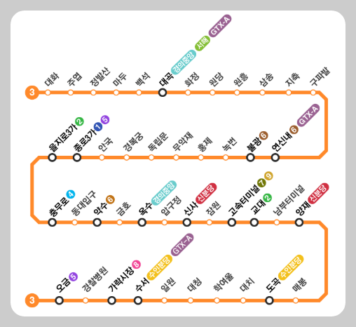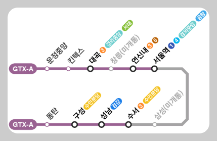 ⦁ GTX-A ↑ : 킨텍스에서 서울역경유 동탄까지 운행.