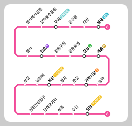 서울지하철 노선도 8호선 - 연계지역 성남 모란, 구리 별래.