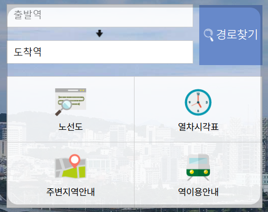 ⦁ 위화면은 노선도, 열차시각표, 주변지역안내, 역이용안내 등을 자세히 알아볼 수 있습니다.