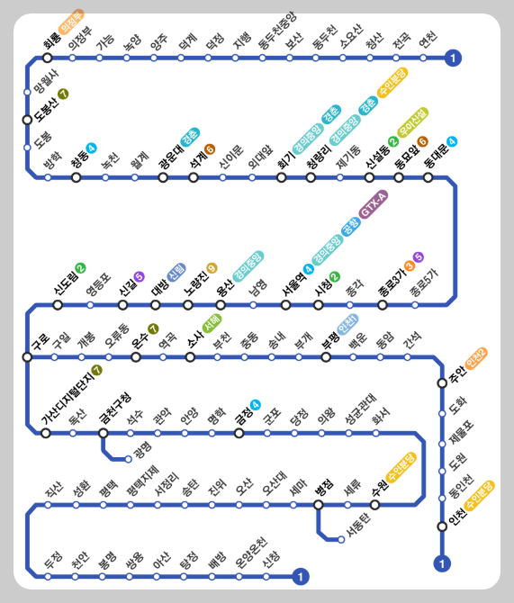 ✱ 1호선 연계➜수인 분당선, 공항철도. 우이동. 서해선. 신림선. GTX-A