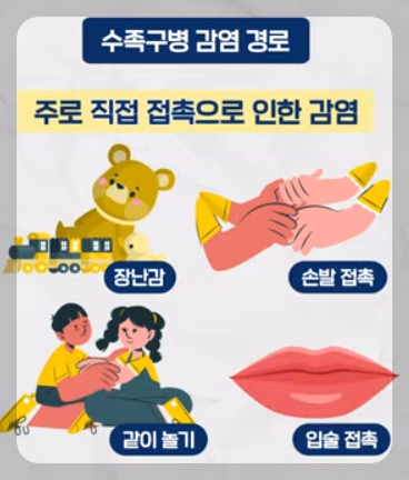 - 감염자의 대변, 침, 가래, 콧물, 수포진물 등 분비물과 전파됩니다