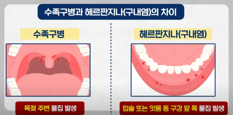 - 어린아이들이 열나고 먹지를 못하고 해서 병원에 오면 목안과 손발을 관찰해 봅니다.