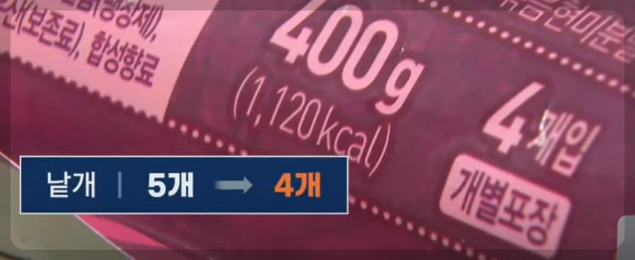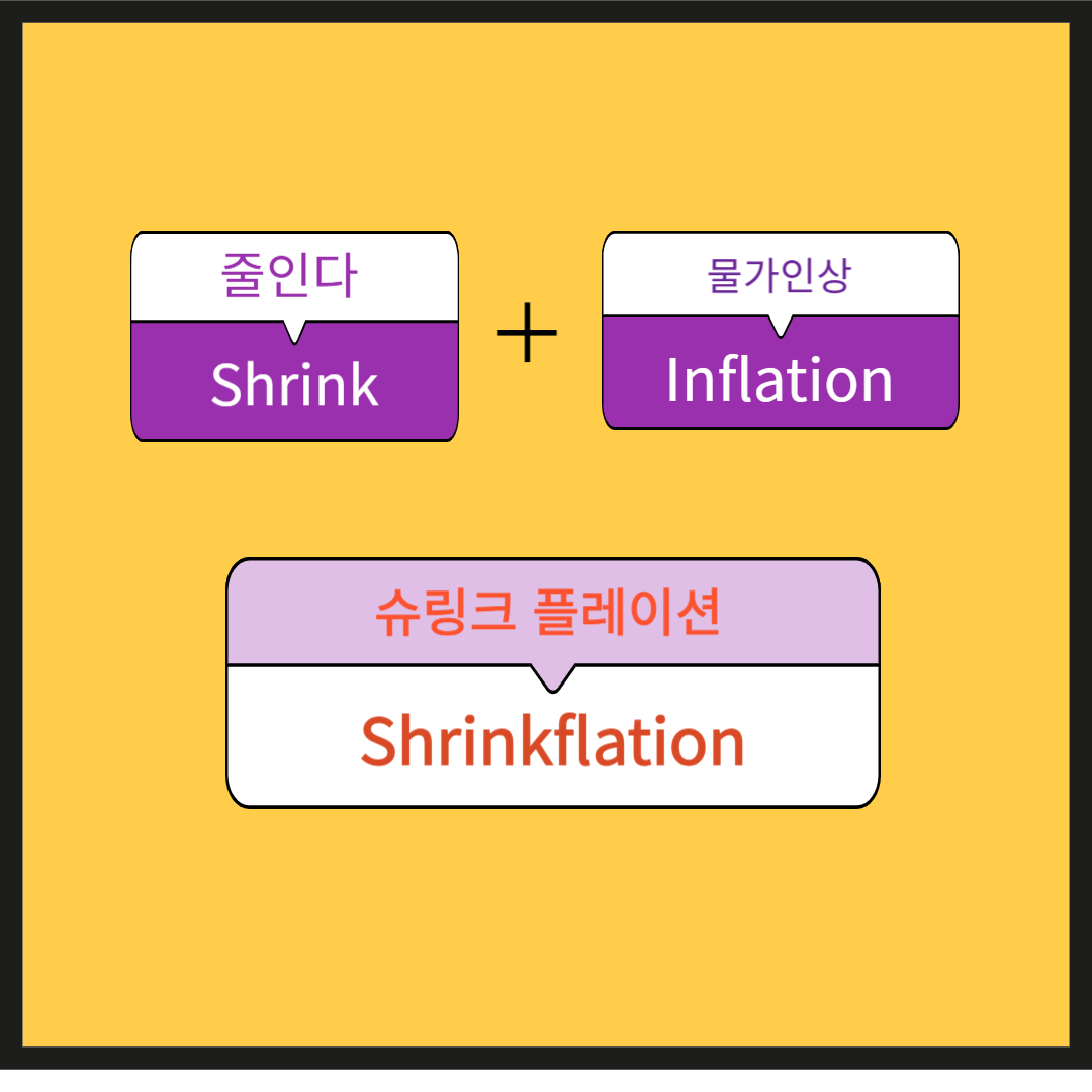 - 기업들이 고물가 시대에 제품가격은 그대로 두고 포장지 내부에 용량을 슬그머니 줄이는 행위를 말합니다.