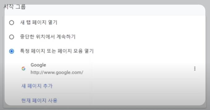 ⑫ 위와 같이 시작페이지 설정과정이 끝났습니다.