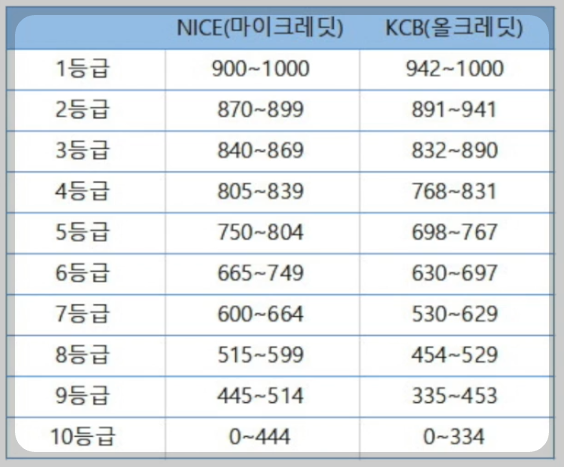 ㅡ 나이스와 KCB 모두 700점 이상은 되어야 보통 신용점수라고 볼 수 있습니다.