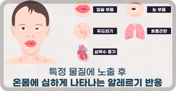 ※ 이러한 증상은 아나필락시스라는 심각한 알레르기 반응의 징후일 수 있습니다. 이는 생명을 위협할 수