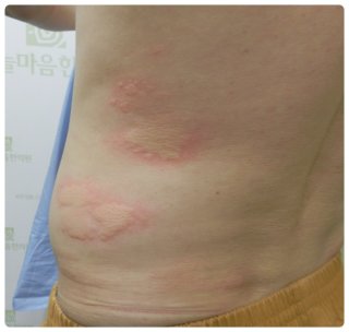 ● 발진의 경계는 비교적 명확하고, 가운데는 약간 창백해 보이기도 합니다. 발진이 이동성을 보이는 것도 특