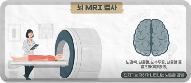 ⯄ MRI검사를 통해 뇌경색, 뇌출혈, 뇌수두증, 뇌종양 등 알츠하이머병 외 인지기능저하가 나타나는