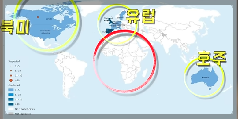 - 아프리카에서 풍토병으로 존재하다가 유럽과 북미 그리고 호주에서 확산이 되고 있습니다.