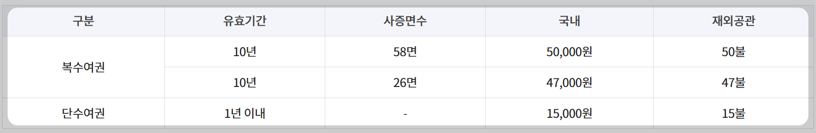 - 국외여행허가 여부와 무관하게 5년 복수여권 발급