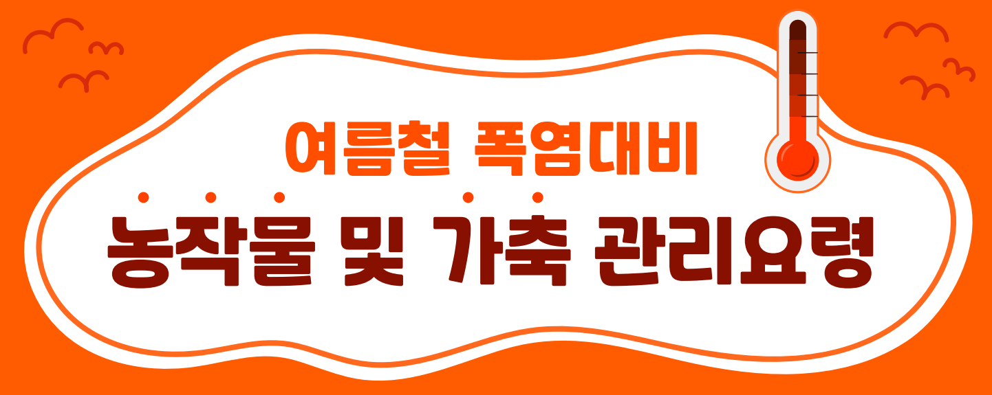 무더운 여름철 장맛비로 피해가 예상되고 있다. 그리고 뜨거운 햇빛폭염으로 농작물 및 가축 관리요령을 활용하여 피해가 없도록 대처해야 한다. 고온다습한 환경에서는 농산물이나 가축 전염병 예방관리에 철저히 해야 한다. 수분부족과 해충발생으로 농작물 및 가축 생육에 장애를 받지 않도록 사전 예방조치를 해야 한다.