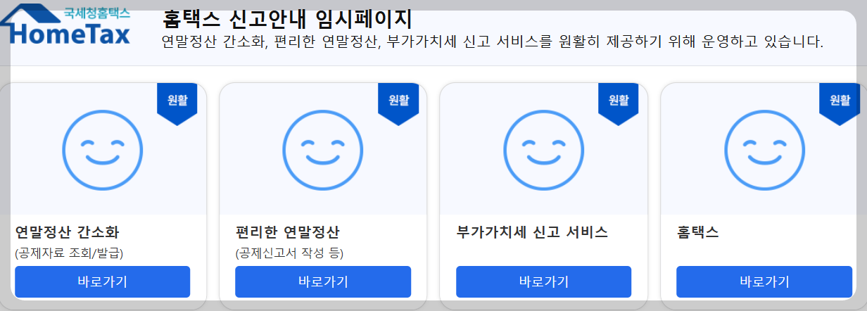 ⦁ 연말정산 환급을 알아보기 위해서는 국세청 홈페이지 위 화면 좌측에서 두 번째 있는 편리한 연말